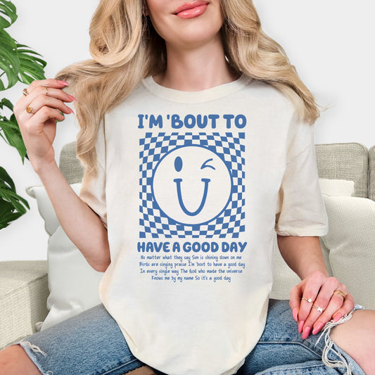 I'm Bout to Have a Good Day Shirt - Christian Aesthetic Smiley Tee, Retro Checkerboard Faith Sweatshirt, Positive Quote Shirt, Spiritual Gift