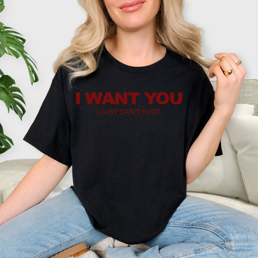 I Want You I Just Can't Flirt Shirt - Funny Sarcastic Quote Tee, Socially Awkward Humor Sweatshirt, Introvert Gift, Minimalist Statement Shirt