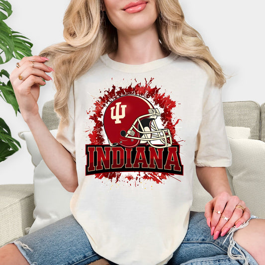 Indiana Hoosiers Football Helmet Shirt - IU Splatter Art T-Shirt, Indiana College Sports Fan Gift, Red and White Hoosier Pride Sweatshirt