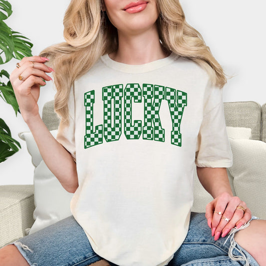 Lucky Checkerboard Shirt - St. Patrick's Day T-Shirt, Retro Lucky Charm Tee, Green Plaid Aesthetic Sweatshirt, Festive Irish Party Apparel