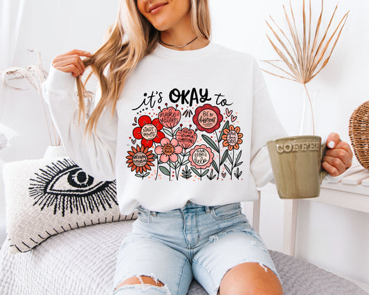 Botanical Art Sweatshirt, Minimal Flower Illustration Crewneck, Soft Cottagecore Pullover, Everyday Cozy Wear