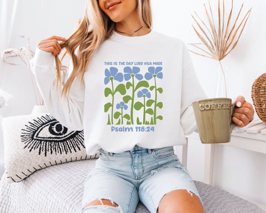 Botanical Christian Sweatshirt, Floral Bible Graphic Crewneck, Relaxed Fit Pullover