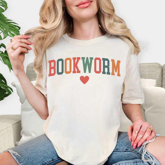 Colorful Retro Bookworm Shirt - Groovy Reading Lover T-Shirt, Aesthetic Librarian Gift, Vintage Bookish Heart Tee, Cute Teacher Appreciation Shirt