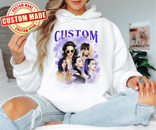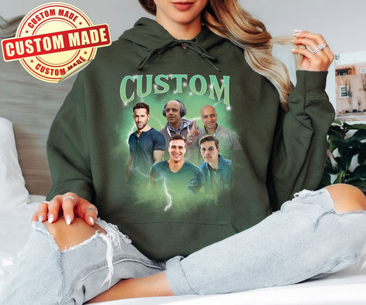 Custom Bootleg Hoodie - Personalized 90s Vintage Rap Style Pullover - Your Photo Graphic Design