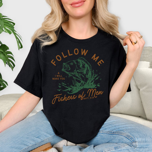 Fishers of Men Christian T-Shirt - Matthew 4:19 Bible Verse Tee, Vintage Fishing Graphic Shirt, Religious Faith Apparel, Angler Gift