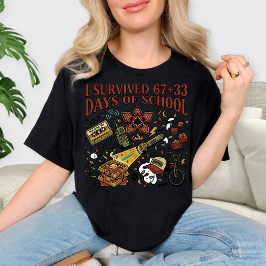 I Survived 67+33 Days of School Hoodie – Stranger Things Inspired Hawkins Graphic Hoodie, Funny End of School Unisex Sweatshirt