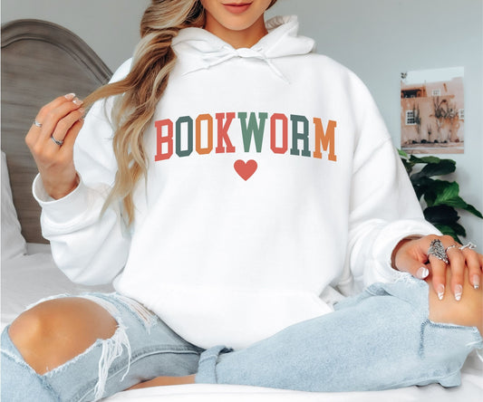 Colorful Retro Bookworm Hoodie - Groovy Reading Lover Hooded Sweatshirt, Aesthetic Librarian Pullover, Vintage Bookish Heart Hoodie, Cute Teacher Appreciation Apparel