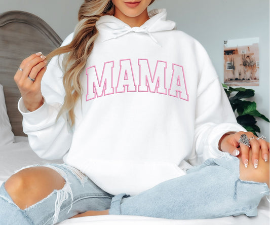 Pink Outline Mama Hoodie - Minimalist Varsity Motherhood Hooded Sweatshirt, Cute Aesthetic Mama Pullover, Mother’s Day Gift, Trendy Pastel Mom Life Hoodie