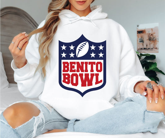 Benito Bowl Football Hoodie, Funny Tailgate Graphic Hooded Sweatshirt for Game Day
