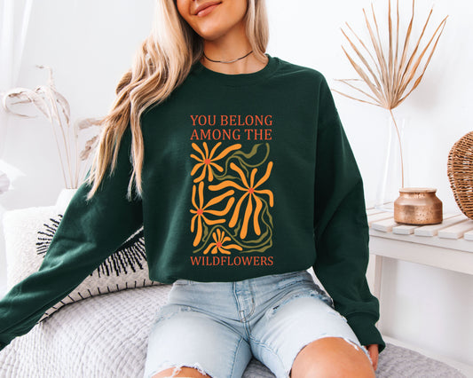 Nature Walk Sweatshirt, Wildflower Illustration Crewneck Pullover, Relaxed Casual Top