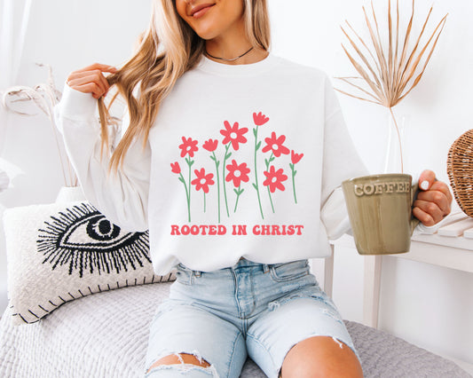 Retro Garden Faith Sweatshirt, Christian Floral Graphic Crewneck, Soft Fit Pullover