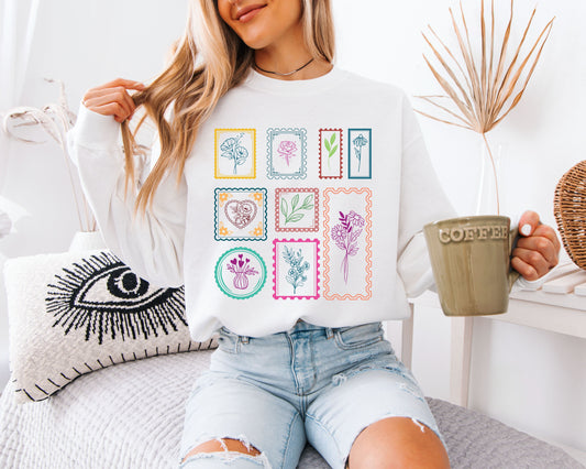 Retro Floral Sweatshirt, Colorful Flower Graphic Crewneck, Botanical Aesthetic Pullover, Cute Garden Inspired Cozy Top, Nature Lover Gift