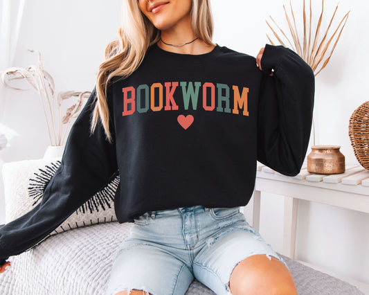 Colorful Retro Bookworm Sweatshirt - Groovy Reading Lover Pullover, Aesthetic Librarian Jumper, Vintage Bookish Heart Crewneck, Cute Teacher Appreciation Sweatshirt
