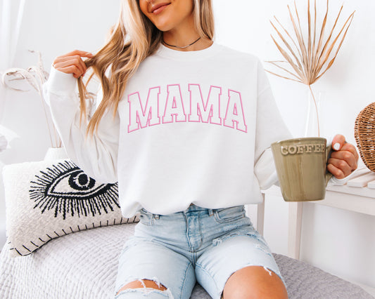 Pink Outline Mama Sweatshirt - Minimalist Varsity Motherhood Pullover, Cute Aesthetic Mama Jumper, Mother’s Day Gift, Trendy Pastel Mom Life Crewneck