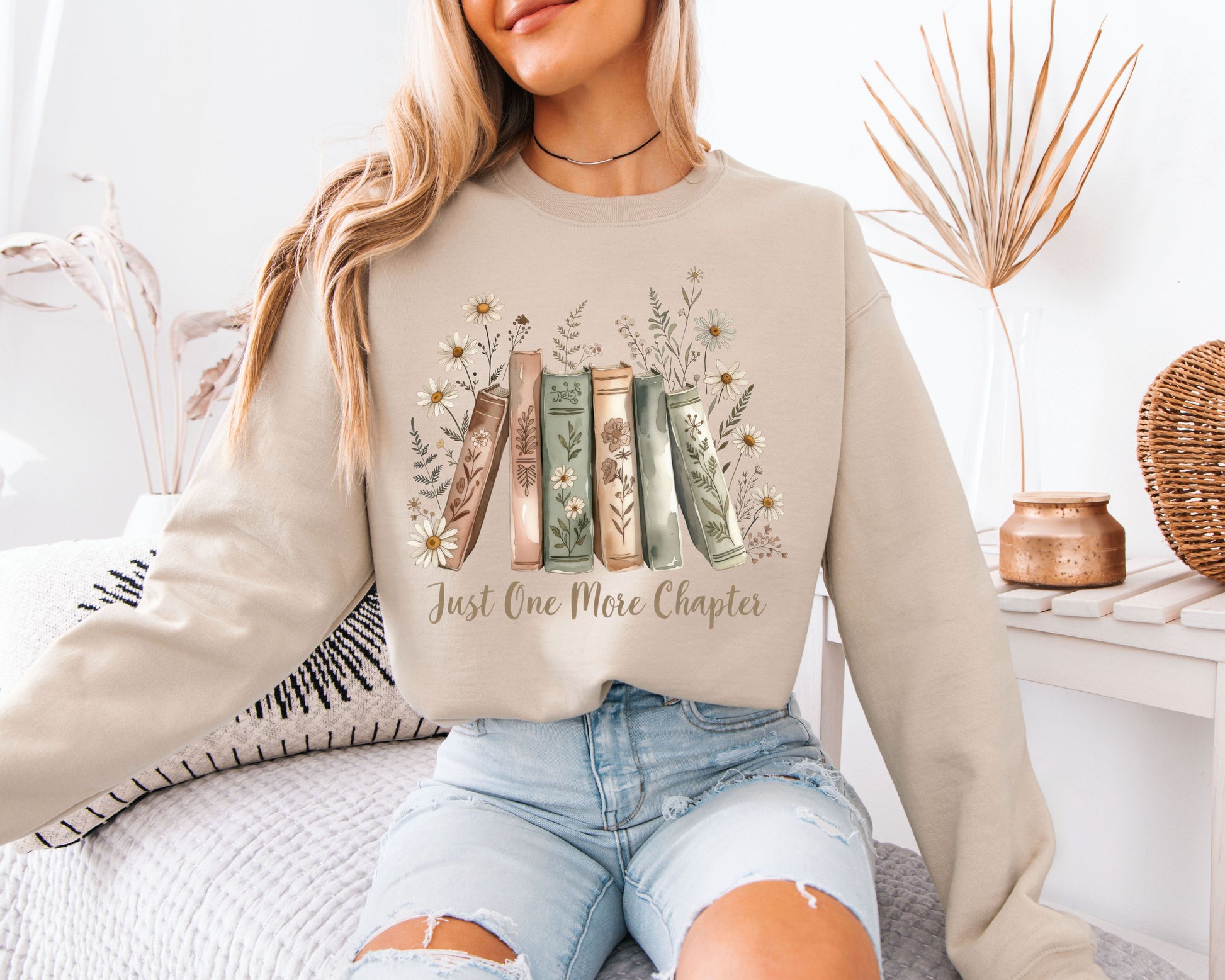 Just One More Chapter Sweatshirt, Book Lover Floral Crewneck, Cozy Reader Cottagecore Graphic Pullover