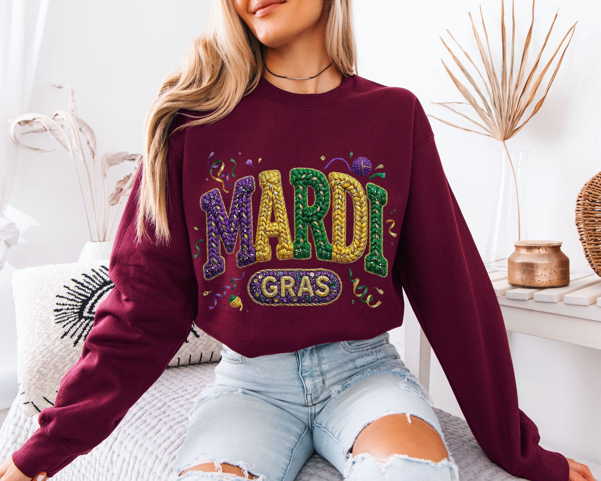 Celebrate the energy of Mardi Gras with a fun and festive sweatshirt inspired by carnival culture, music, and color.