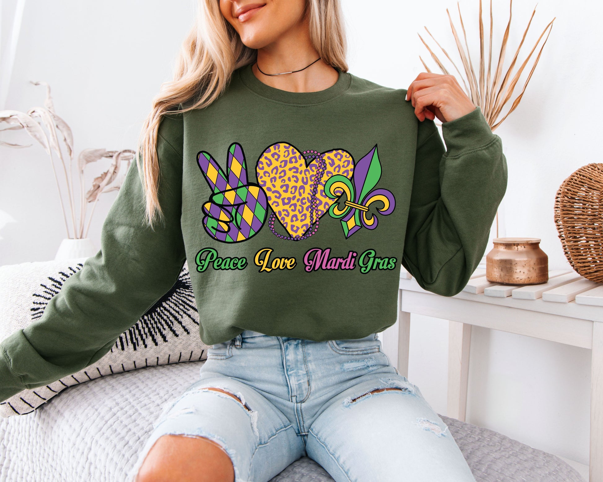 Designed to capture the joyful spirit of Mardi Gras, this sweatshirt is perfect for parades, parties, and everyday wear during the celebration season. With its bold yet wearable design, it brings together comfort, creativity, and festival vibes in one stylish piece.