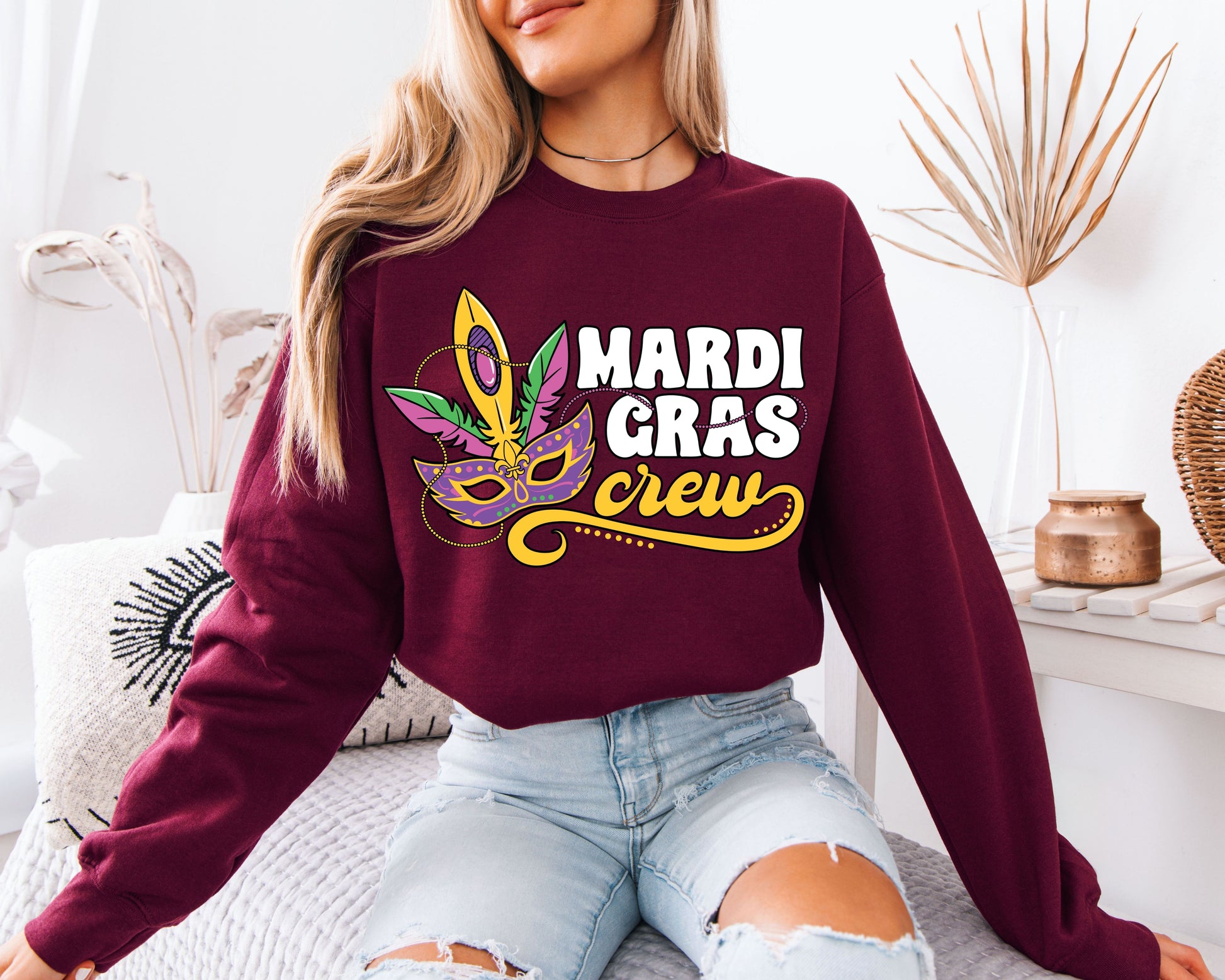 Celebrate the energy of Mardi Gras with a fun and festive sweatshirt inspired by carnival culture, music, and color.