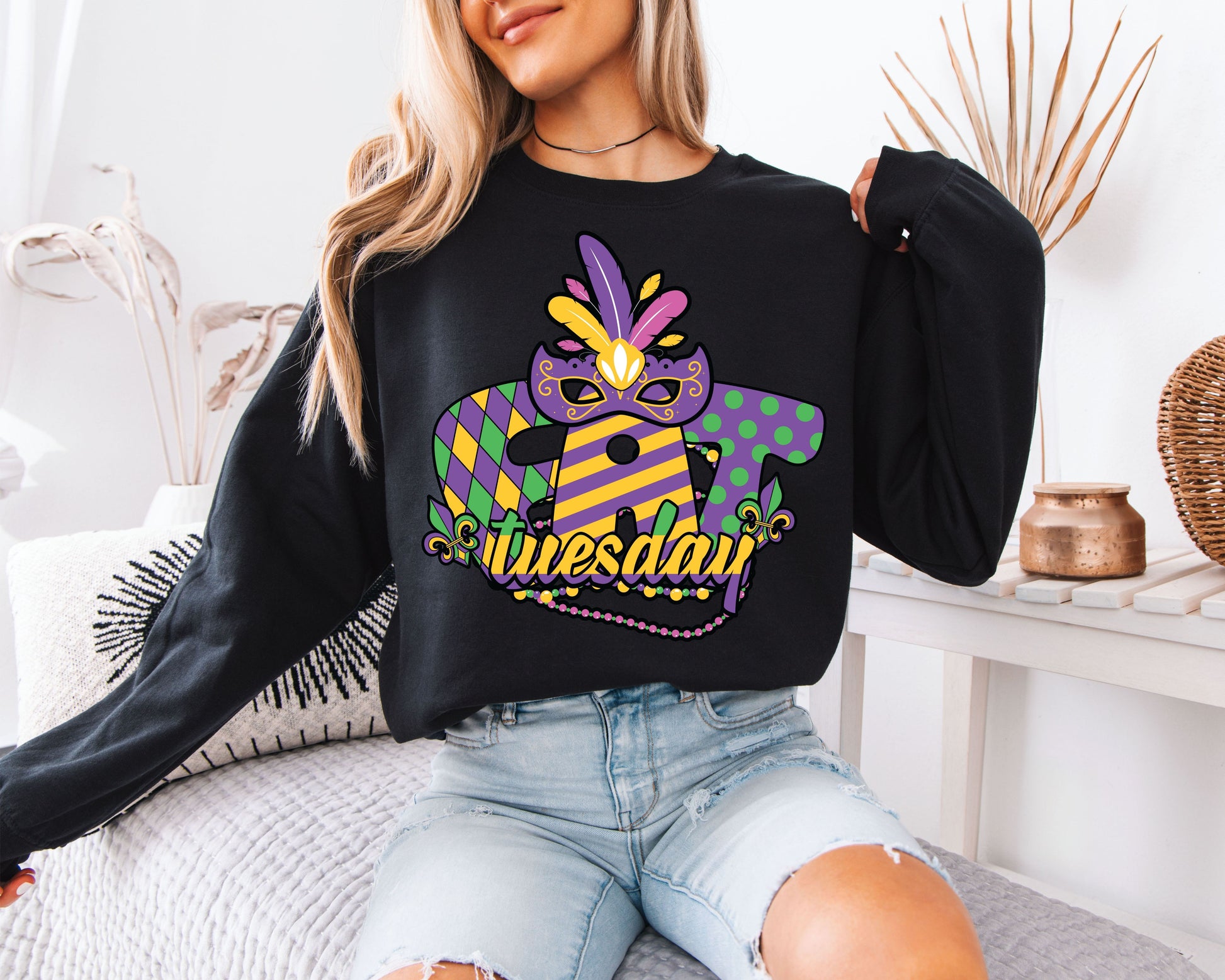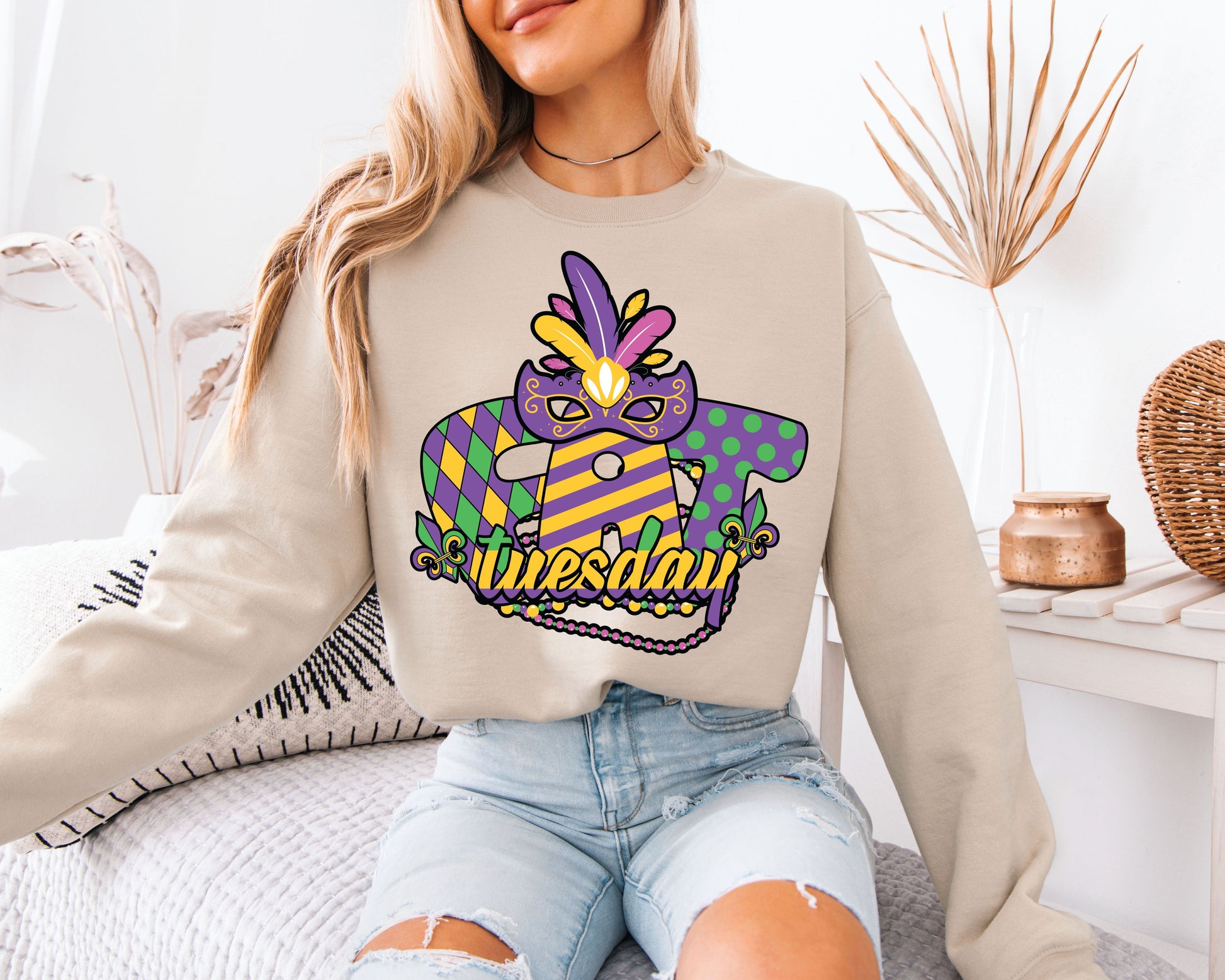 Celebrate the energy of Mardi Gras with a fun and festive sweatshirt inspired by carnival culture, music, and color.
