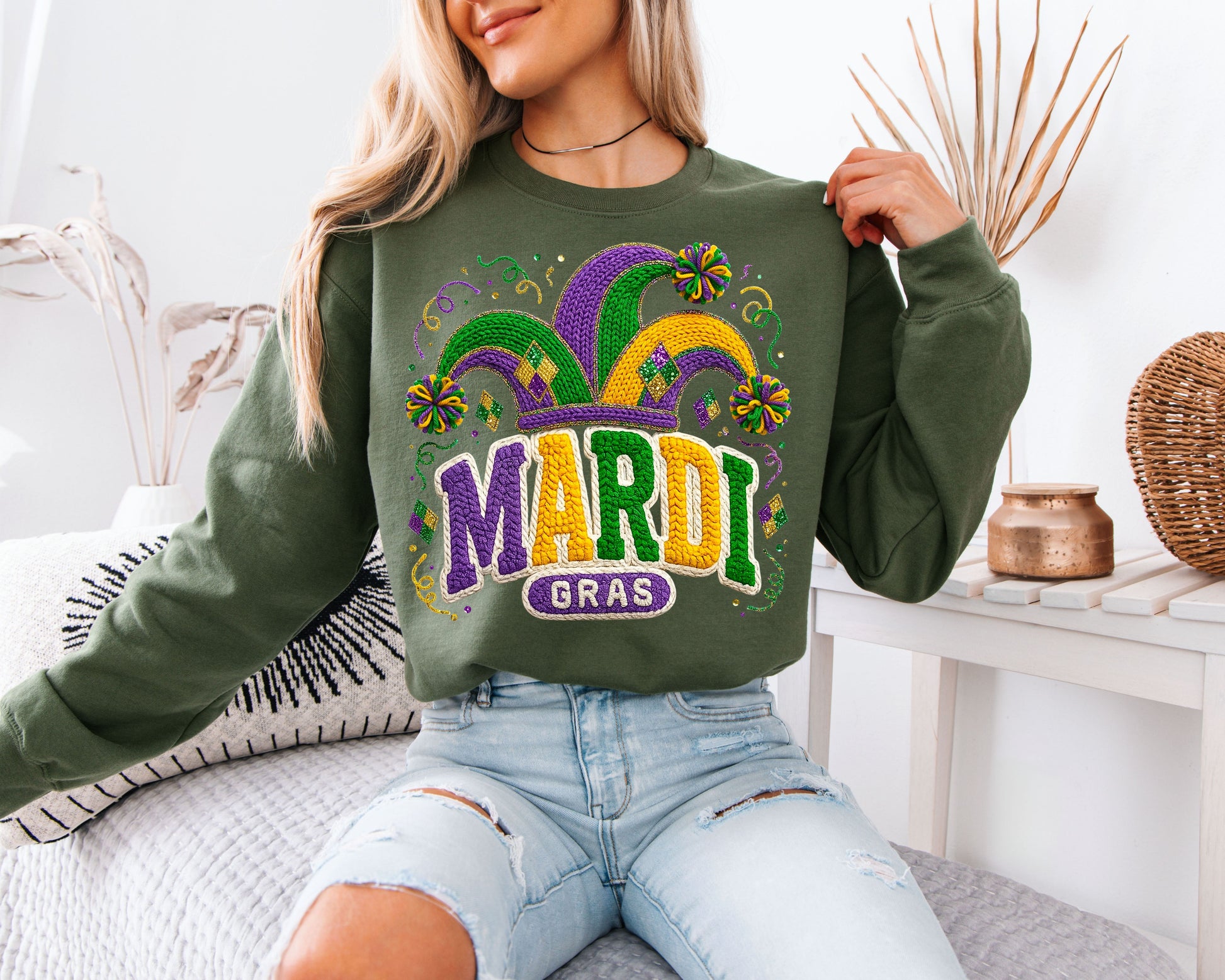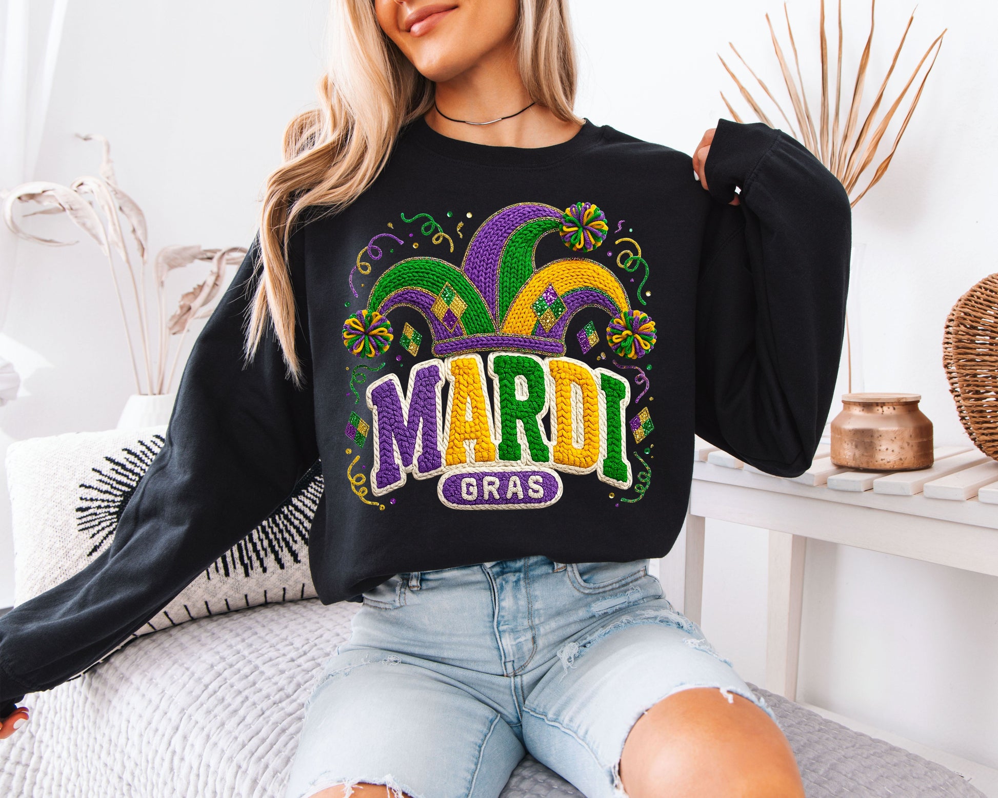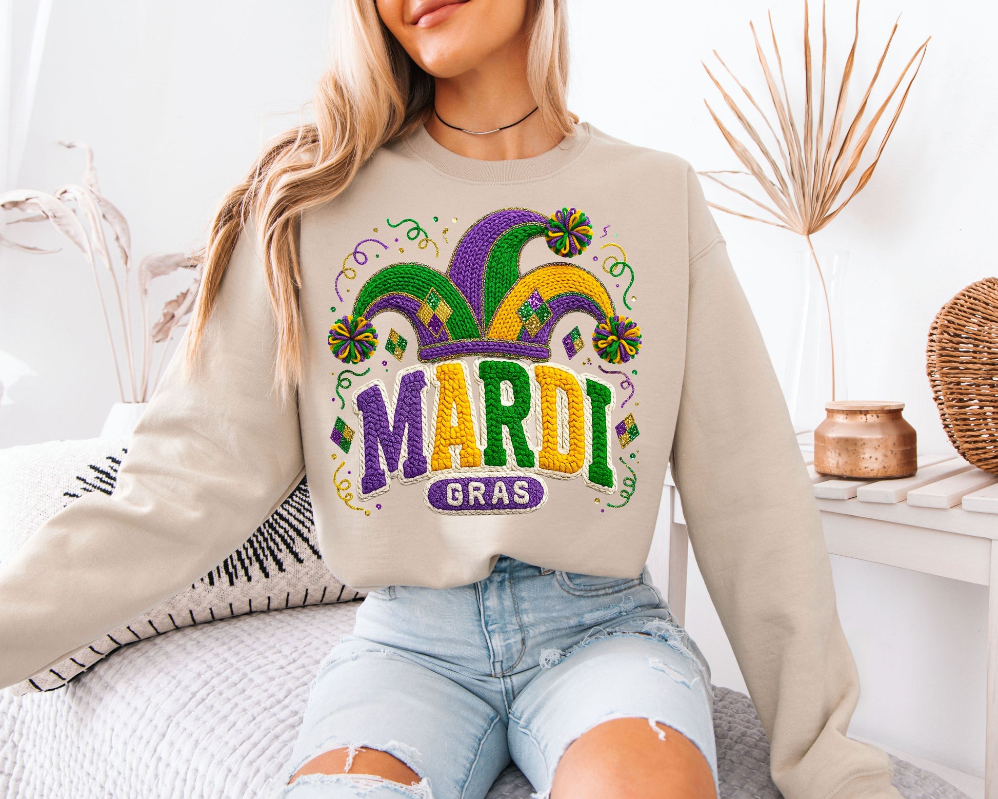 Celebrate the energy of Mardi Gras with a fun and festive sweatshirt inspired by carnival culture, music, and color.