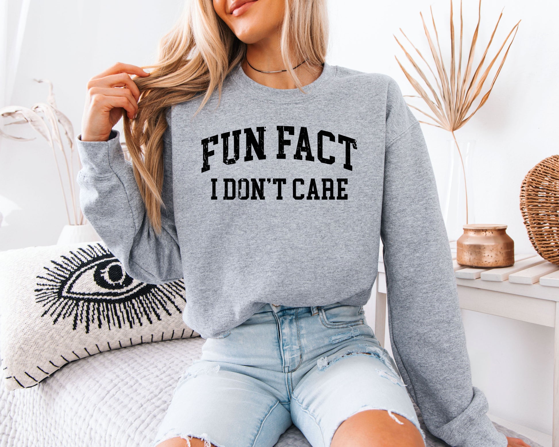 Fun Fact I Don’t Care Sweatshirt, Sarcastic Quote Crewneck, Minimal Bold Text Unisex Pullover