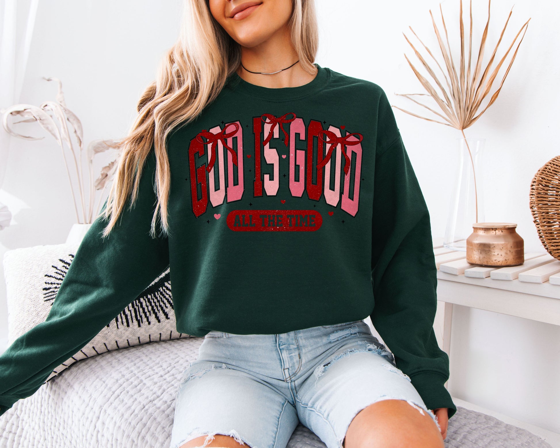 God Is Good All The Time Sweatshirt | Coquette Bow Christian Crewneck | Cute Faith Based Valentine Gift