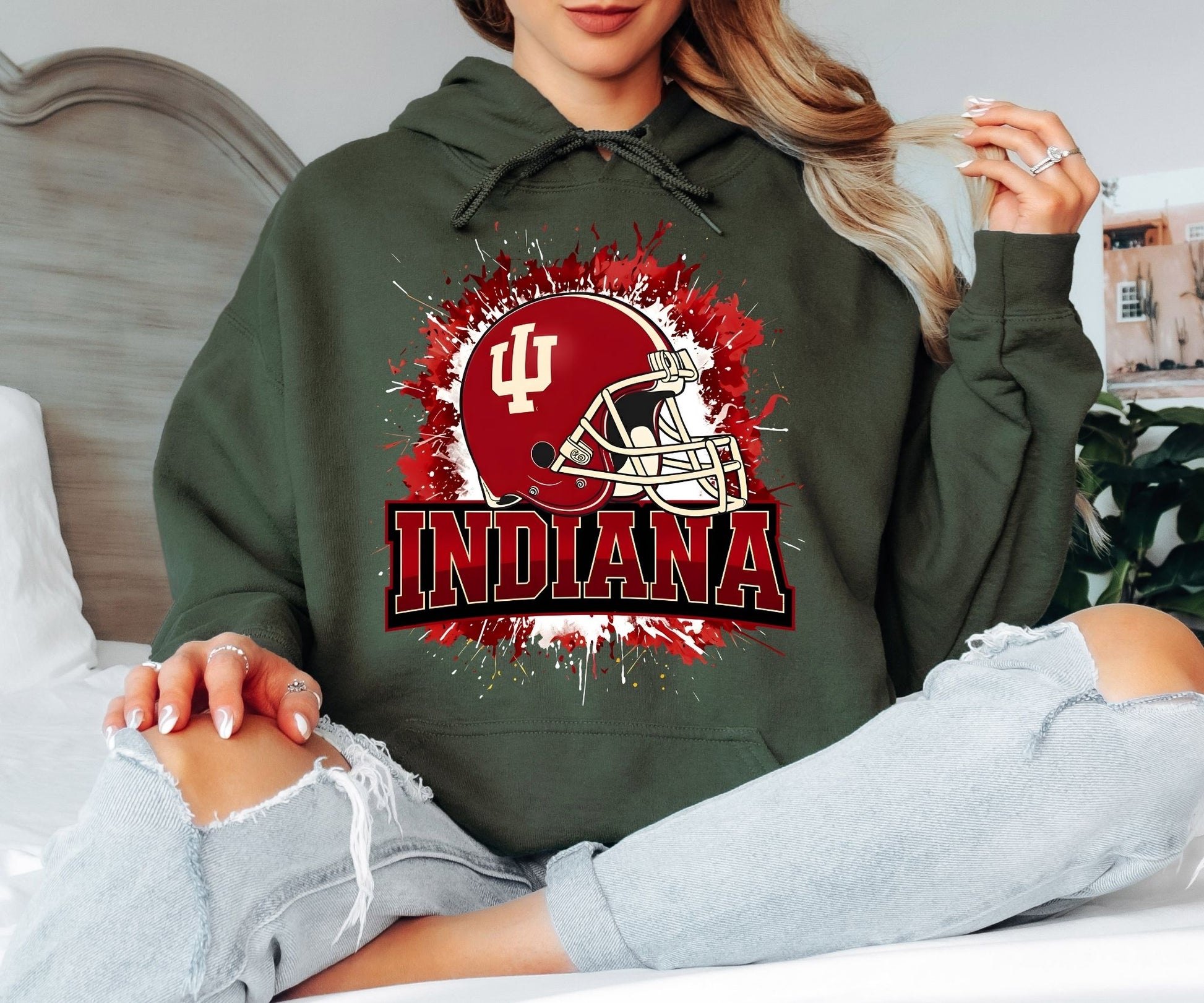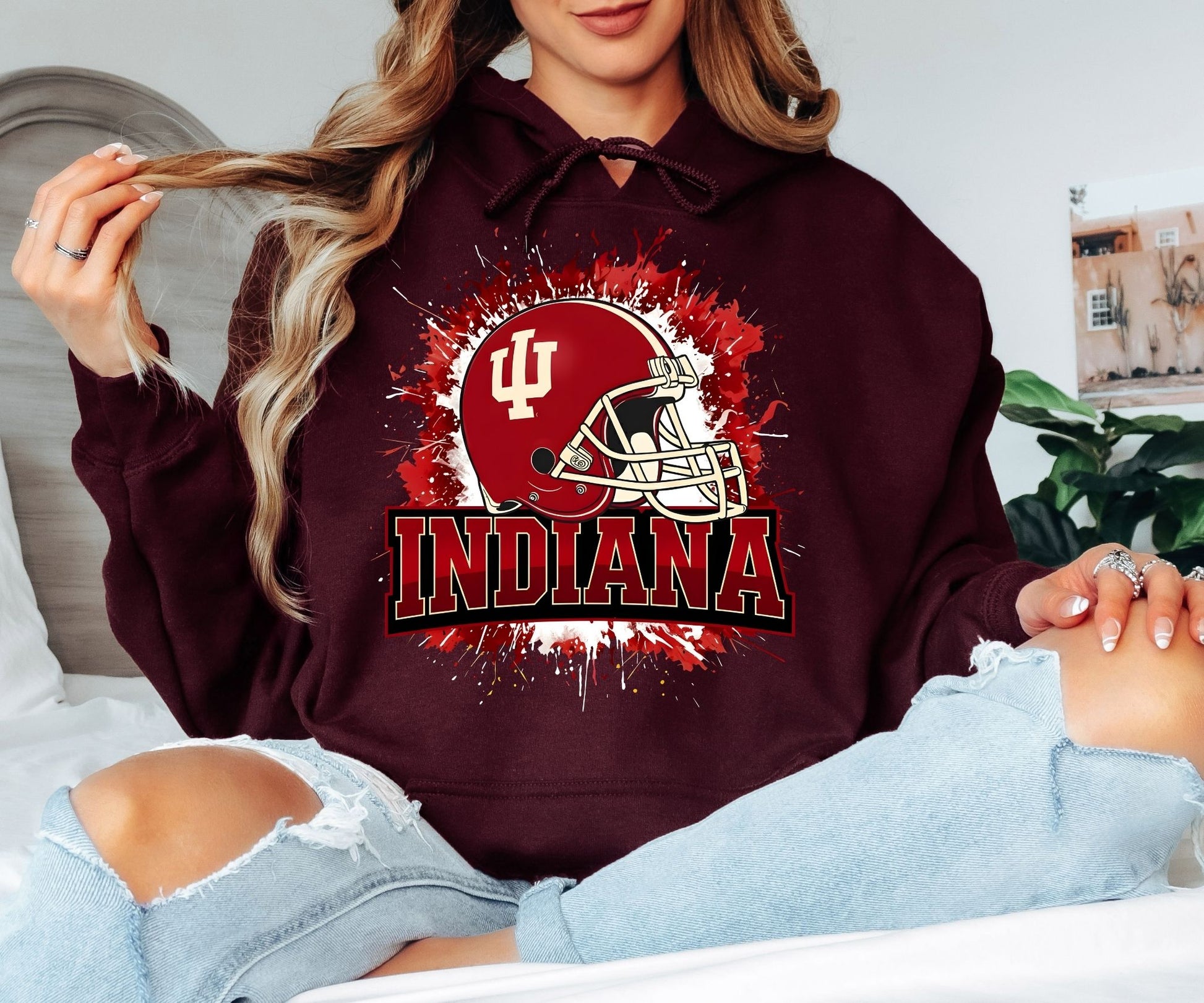 Show your team pride with this bold Indiana football–inspired hoodie featuring a striking helmet graphic and energetic splash design. Created for fans who love college football culture and game day style, this hoodie captures the excitement, tradition, and spirit of Indiana-inspired football aesthetics.
