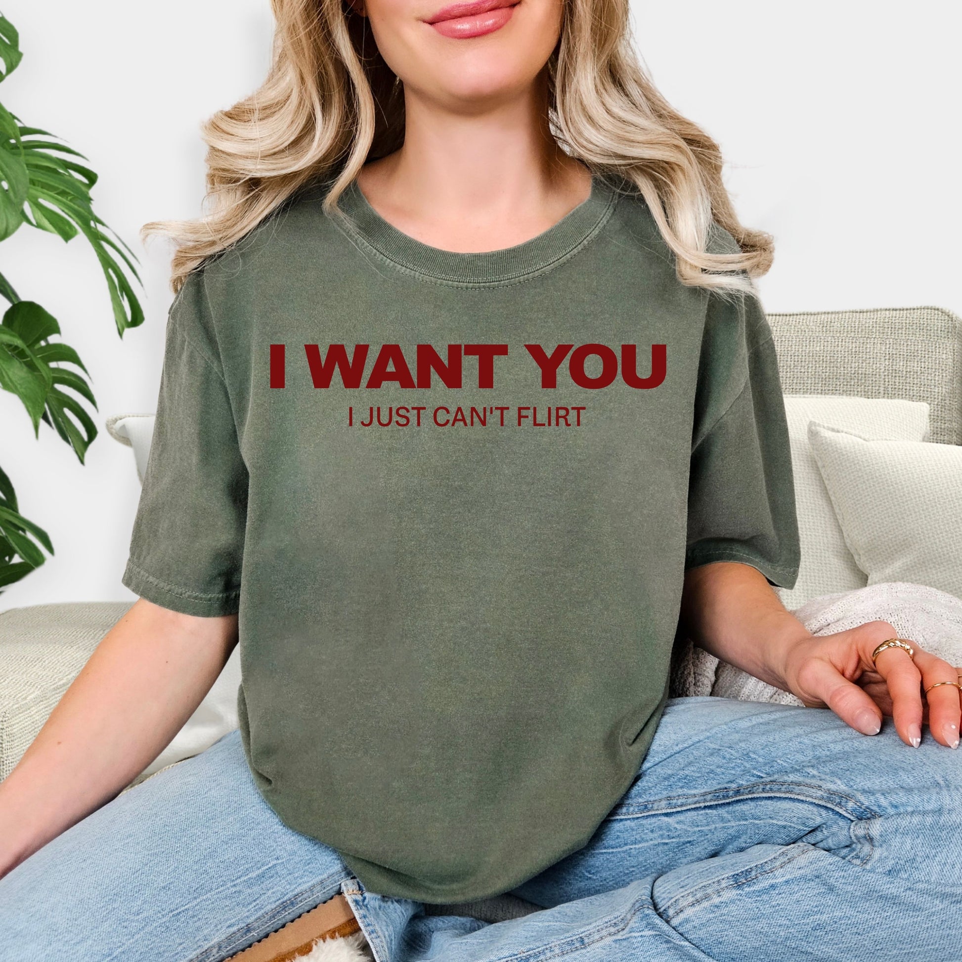 I Want You I Just Can't Flirt Shirt - Funny Sarcastic Quote Tee, Socially Awkward Humor Sweatshirt, Introvert Gift, Minimalist Statement Shirt