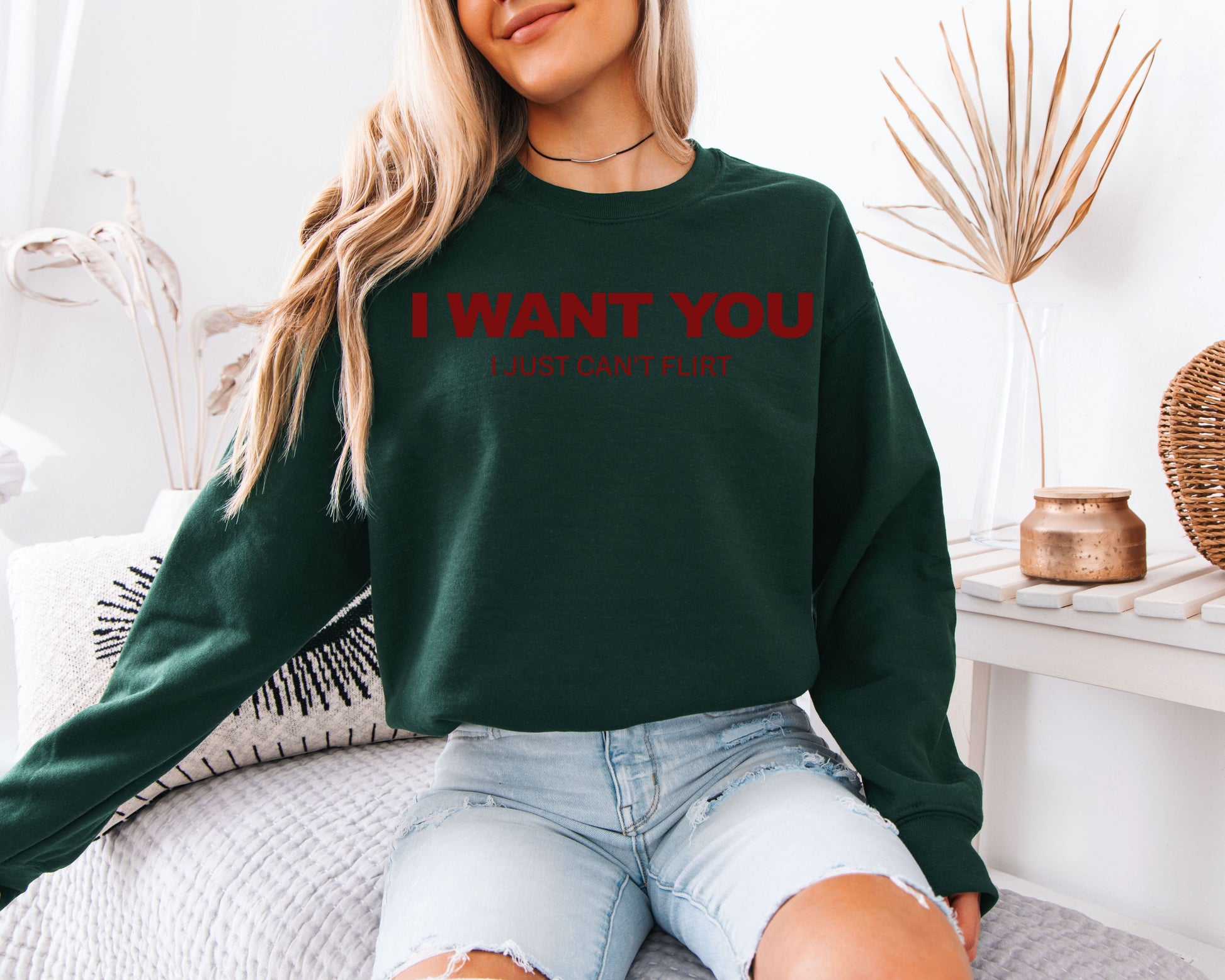 I Want You Graphic Sweatshirt – Funny Quote Unisex Pullover, Minimal Text Aesthetic Cozy Sweatshirt