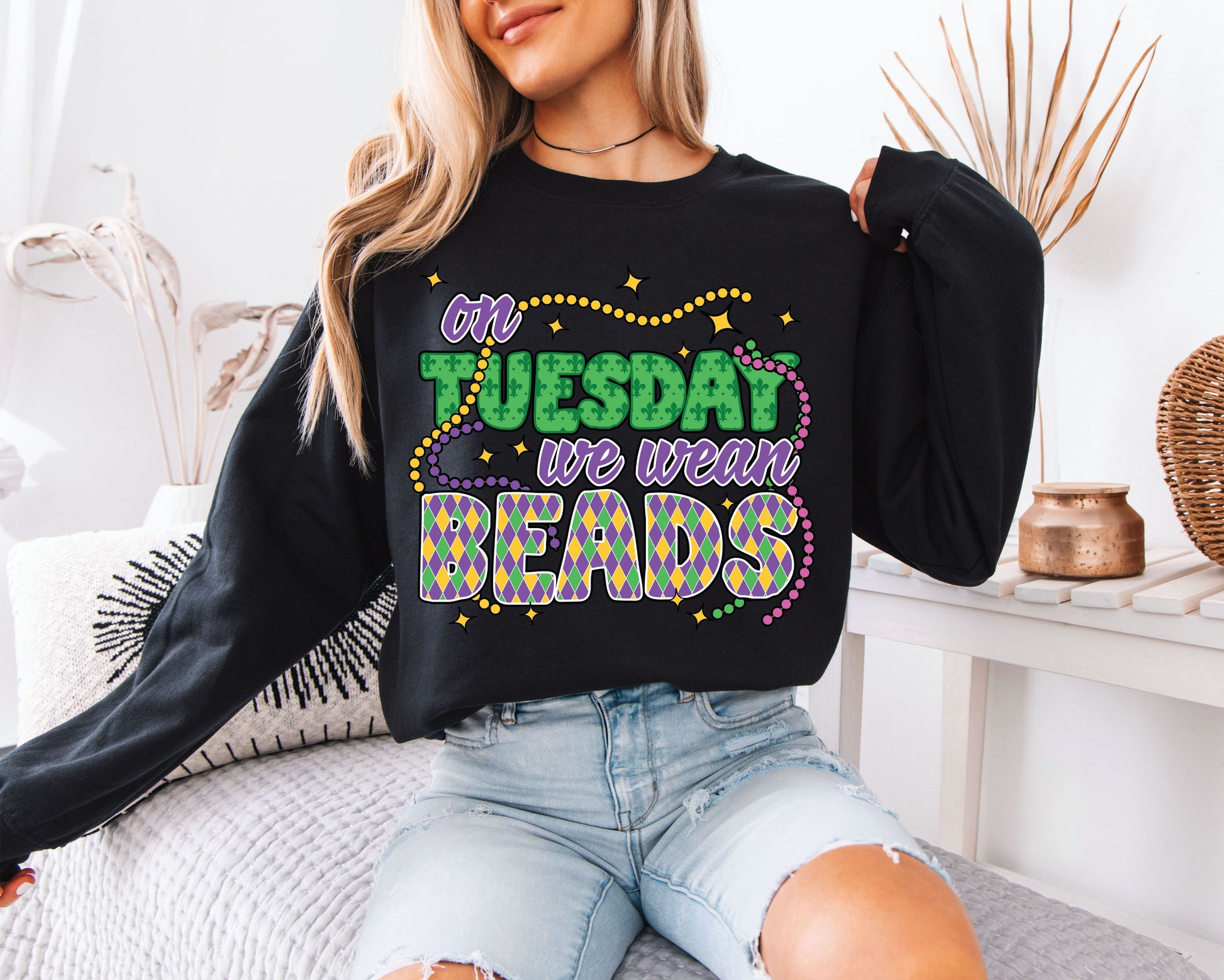 Celebrate the energy of Mardi Gras with a fun and festive sweatshirt inspired by carnival culture, music, and color.