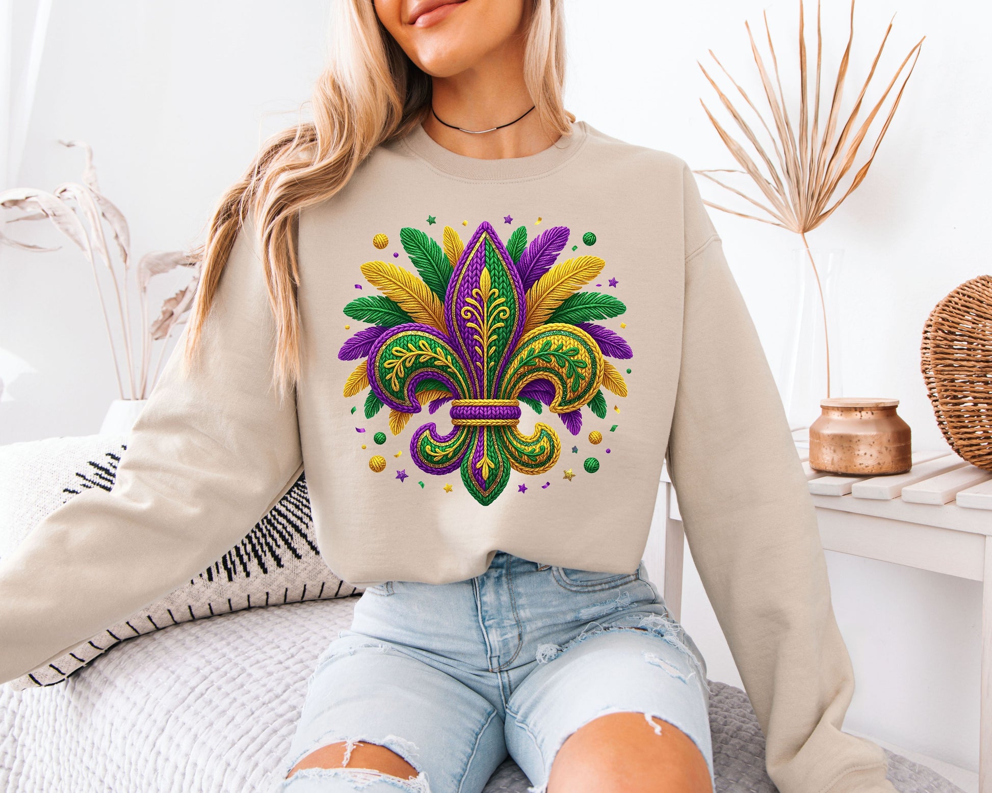 Designed to capture the joyful spirit of Mardi Gras, this sweatshirt is perfect for parades, parties, and everyday wear during the celebration season. With its bold yet wearable design, it brings together comfort, creativity, and festival vibes in one stylish piece.