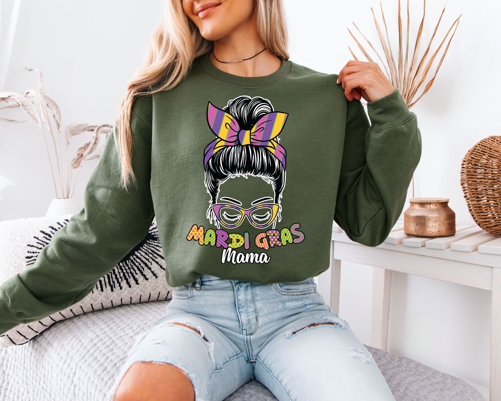 Celebrate the energy of Mardi Gras with a fun and festive sweatshirt inspired by carnival culture, music, and color.