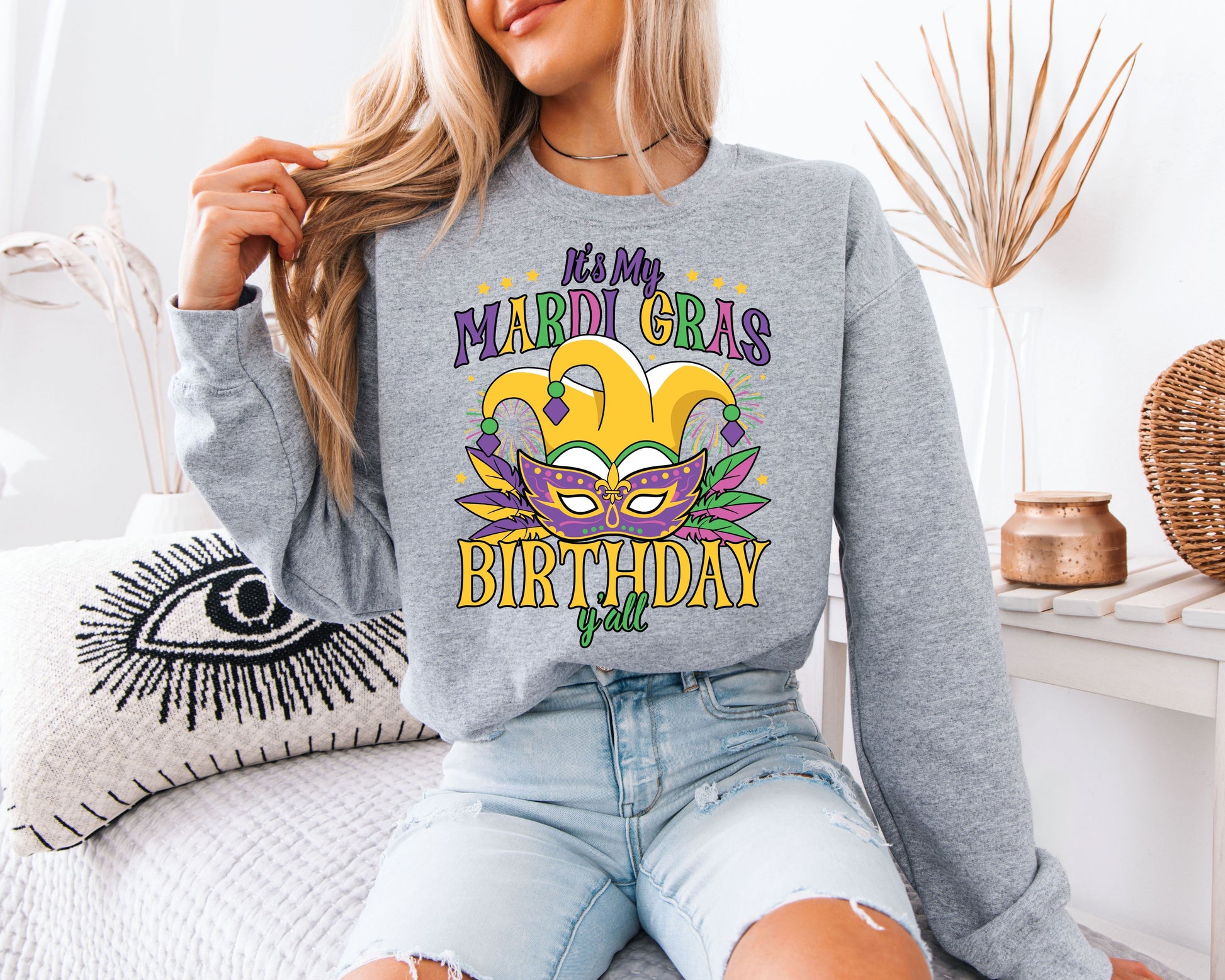 Designed to capture the joyful spirit of Mardi Gras, this sweatshirt is perfect for parades, parties, and everyday wear during the celebration season. With its bold yet wearable design, it brings together comfort, creativity, and festival vibes in one stylish piece.