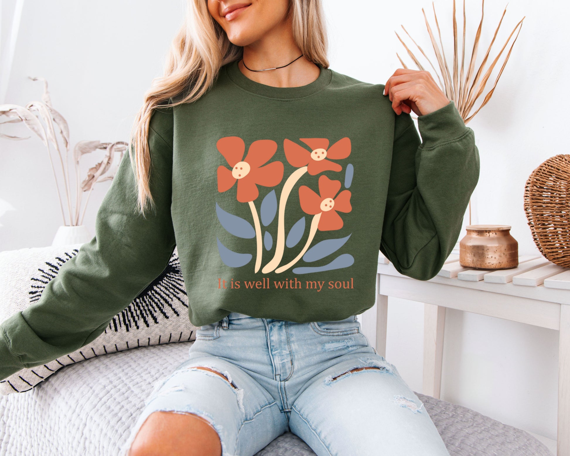 Nature-Inspired Floral Sweatshirt, Faith Graphic Crewneck, Soft Daily Pullover